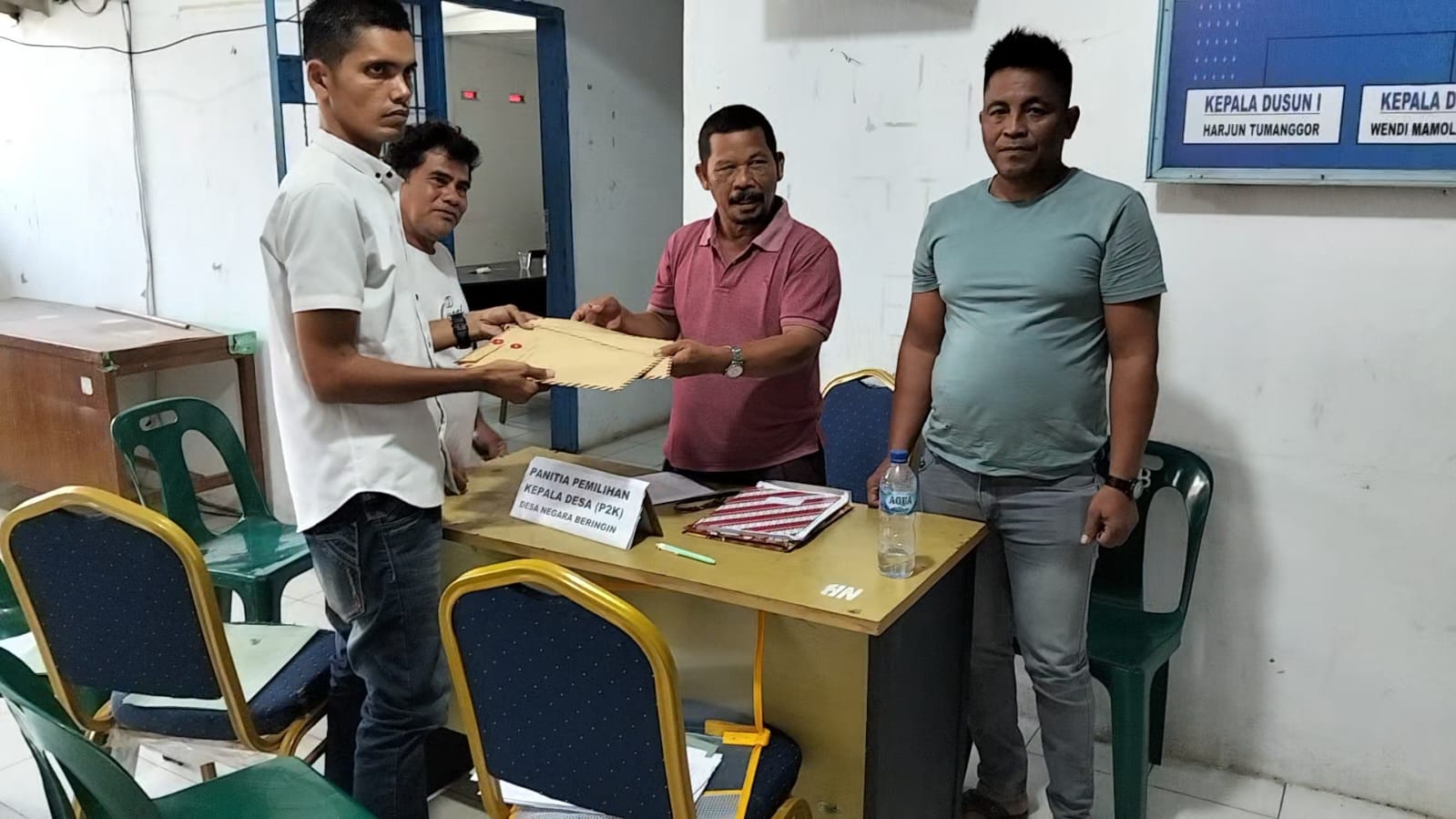 Berkas pendaftarannya diterima langsung ketua panitia pemilihan kepala Desa (P2K) Negara Beringin, Tangkel Ginting.
