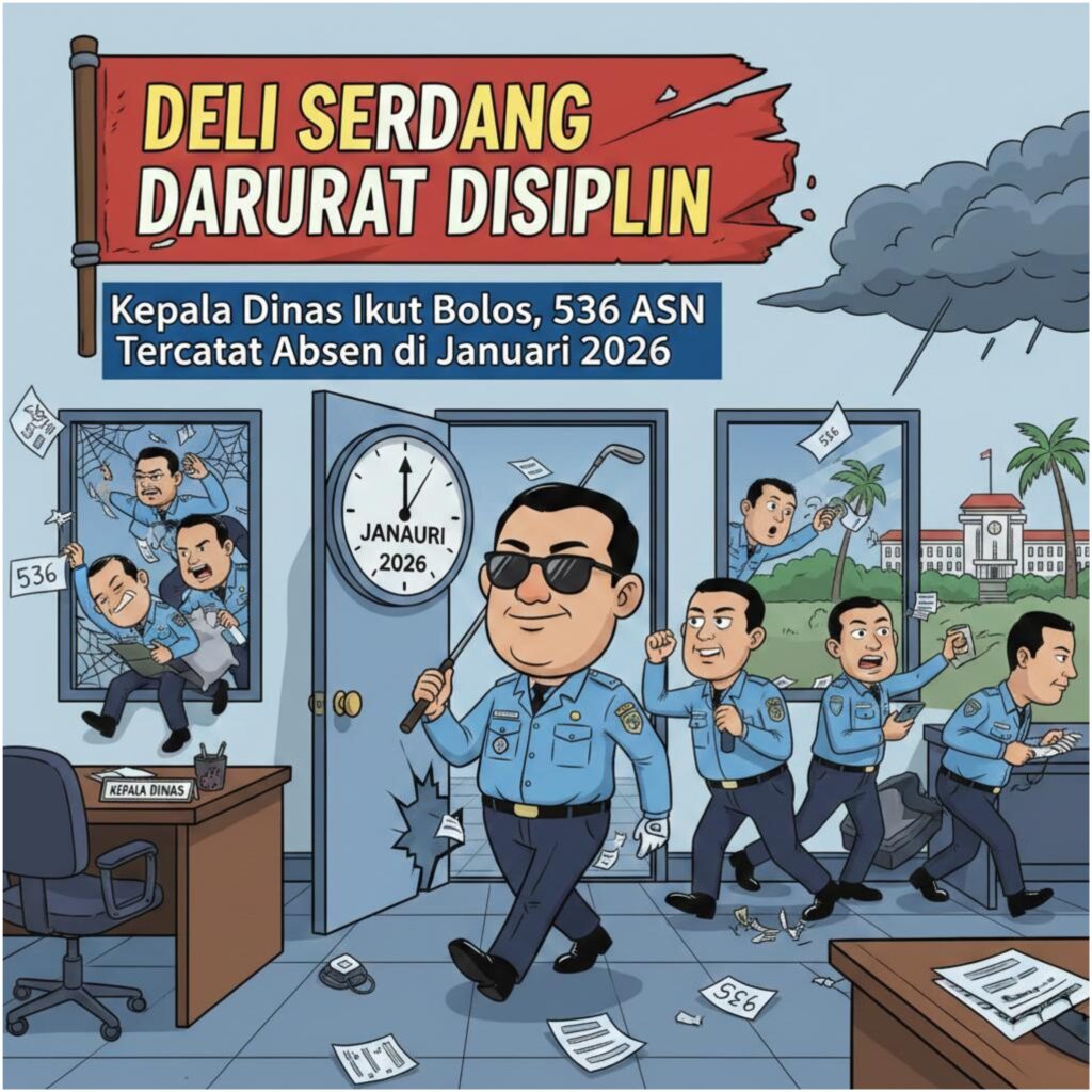 Deli Serdang//Kompasnusa.net : Kinerja aparatur sipil negara (ASN) di Kabupaten Deli Serdang kembali menjadi sorotan. Sebanyak 536 ASN, mulai dari Kepala Dinas hingga staf di kecamatan, tercatat bolos kerja selama bulan Januari 2026. Sabtu (7/2/2026).